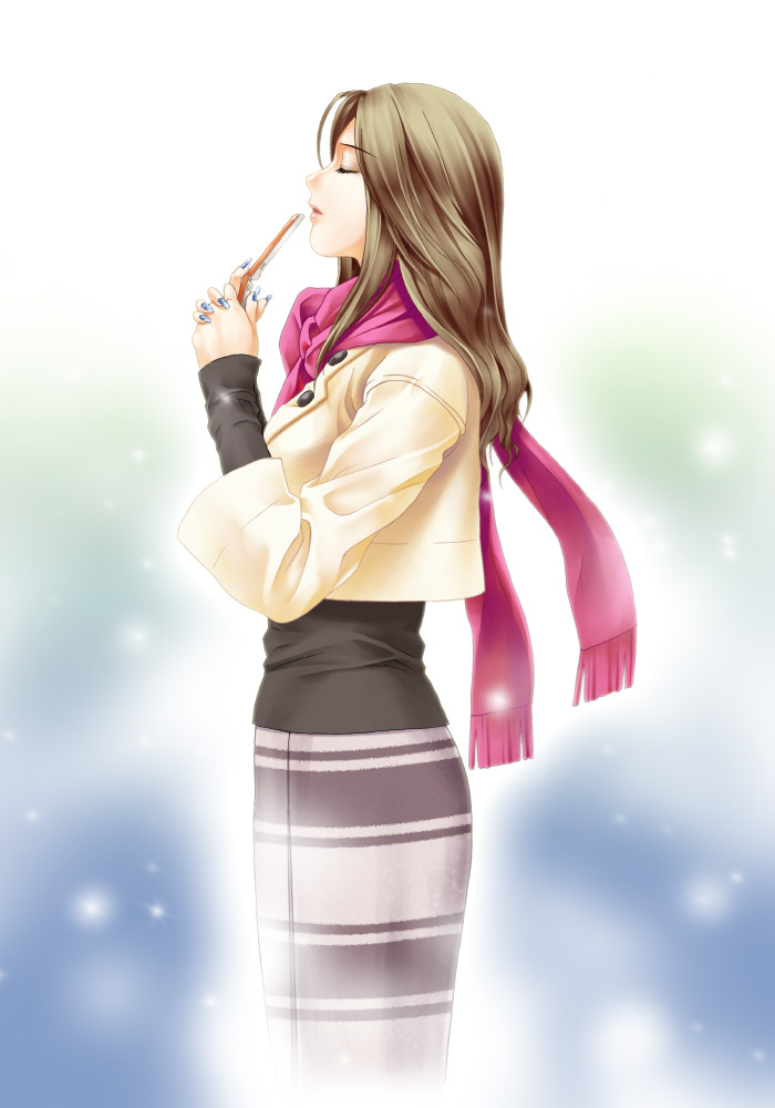 nagato yuki, suzumiya haruhi no yuuutsu, silver hair, non-web source, 00s, 1girl, black nails, brown eyes, female focus, gothic lolita, lolita fashion, nail polish, short hair, solo, thighhighs
