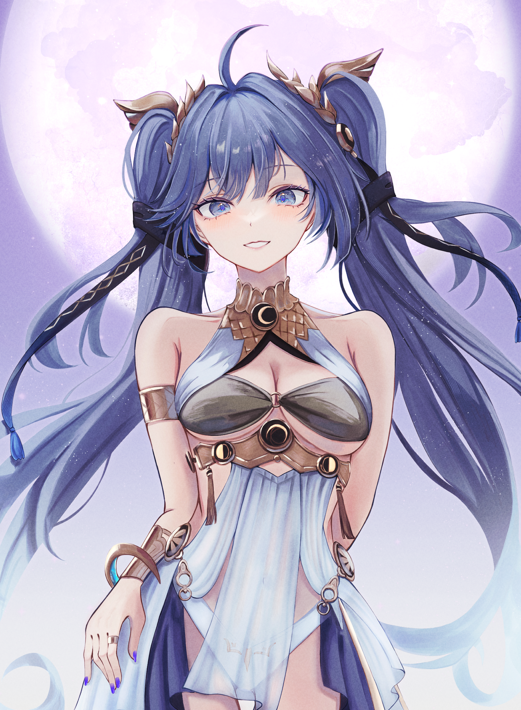0 tsunamayo 01girlahogearm behind backarmletbare shouldersblue eyesblue hairblue skirtbreastscleavagecowboy shotfingernailsfull moongold brahair beltjewelrylaurel crownlooking at viewermedium breastsmoonnail polishparted lipspurple nailsshowgirl skirtskirtsmilesolotwintails