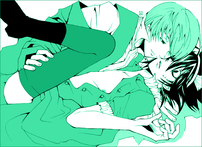 00s2boyscrossdressingcrossdressing (mtf)male focusmonochromemultiple boysopen clothesopen shirtshirtthighhighsyaoi