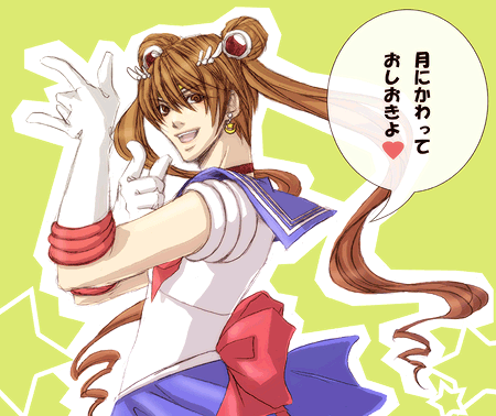 bowbrown haircosplaycrossdressingcrossovercurly hairheartlong hairmagical girlopen mouthribbonsailor moon (cosplay)smiletwintails