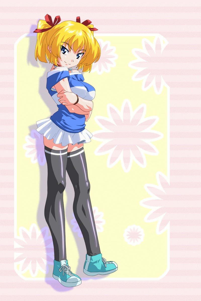 rei (artist), rei (rei's room), arisa bunnings, tsukimura suzuka, lyrical nanoha, mahou shoujo lyrical nanoha, lowres, 00s, 2girls, blonde hair, blue eyes, long hair, multiple girls, school uniform, serafuku, suzuka tsukimura, v