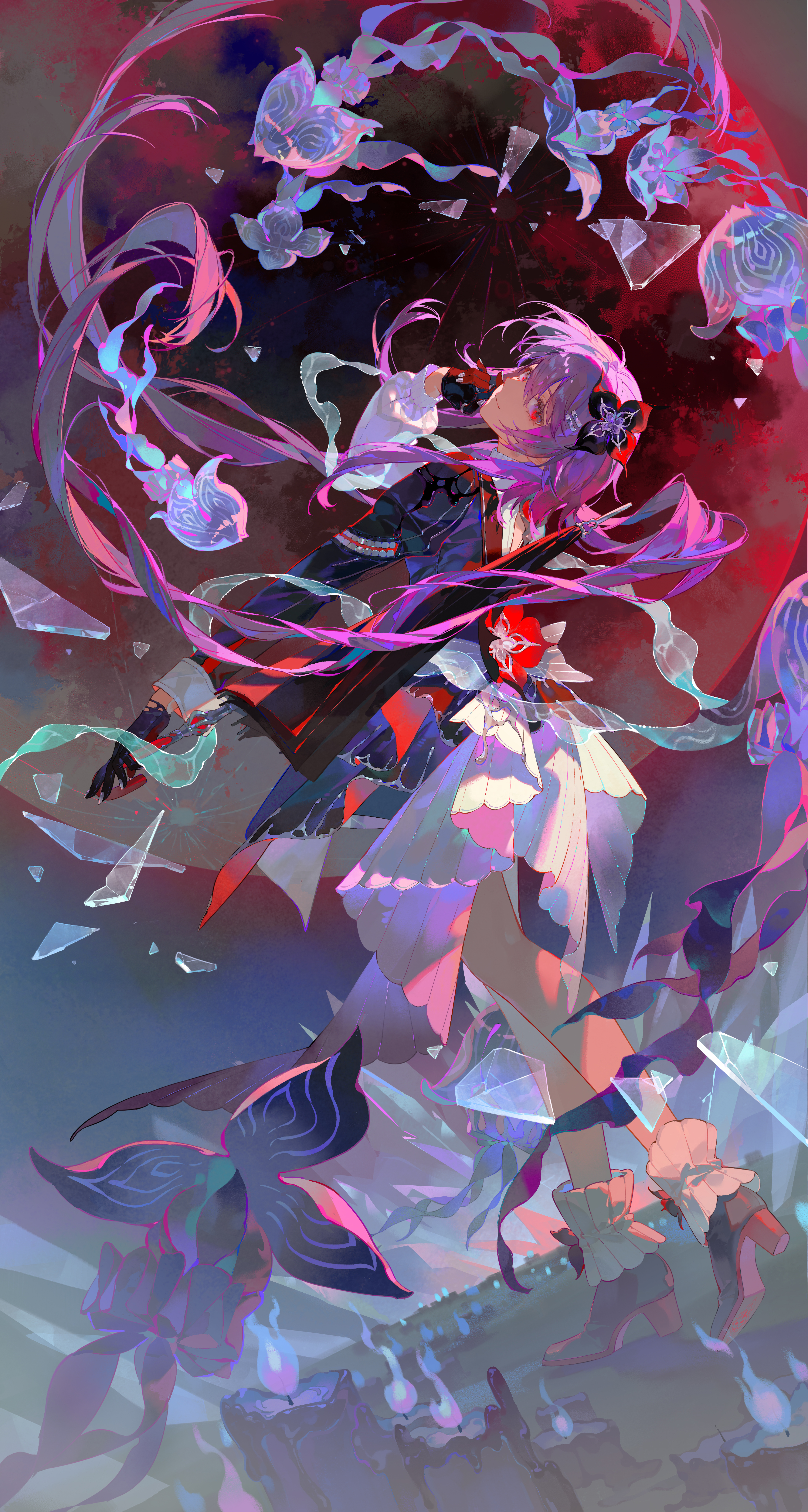 1girlblack bootsblack flowerblack glovesbootsclosed mouthdressflowerfrom behindgloveshair flowerhair ornamenthand uphigh heelslong sleeveslooking backofficial alternate costumeofficial alternate eye colorofficial alternate hair lengthofficial alternate hairstylepink hairred eyessmilesolostanding