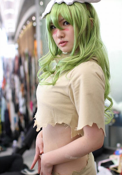 arrancarbandaidcosplayfacial markgreen hairhollow (bleach)long hairnelliel tu odelschwanck (cosplay)number tattooskullsolotattootorn clothes