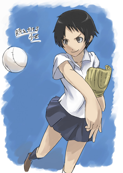 00s1girlbaseballbaseball glovebrown eyesbrown hairfemale focusoutside bordershort hairskirtsmilesolo