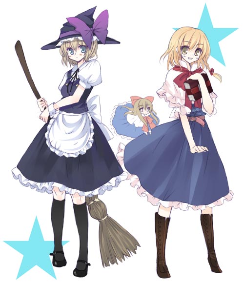 2girlsalice margatroid (cosplay)blonde hairbroomcosplaycostume switchfemale focuskirisame marisa (cosplay)multiple girlsno headwear