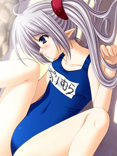 utsurogi angu, izumi konata, lucky star, 00s, 1girl, black socks, blue hair, blush, bow, brown shoes, dress, english text, female focus, green eyes, long hair, mole, mole under eye, one eye closed, open mouth, red bow, red skirt, sailor dress, school uniform, serafuku, shoes, skirt, socks, solo