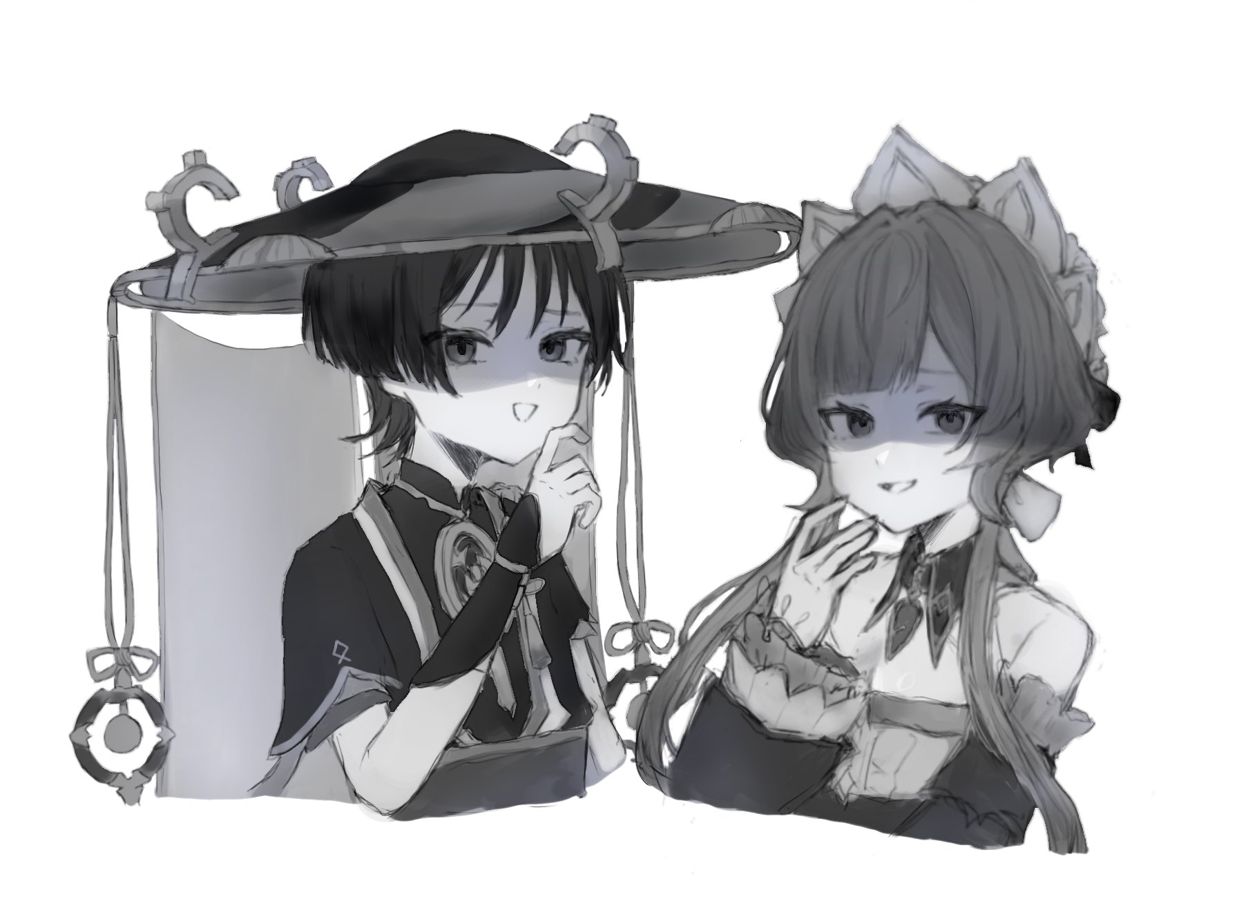1boy1girlarmorbare shouldersblunt bangsblunt endsbodysuitbreastscleavagecropped torsodetached collardetached sleevesdresseyelashesflat chestfrilled sleevesfrillsglovesgreyscalehand uphatheaddressjapanese armorjapanese clothesjewelryjingasajubankimonokotelayered sleeveslong sleeveslooking at viewermandarin collarmitsudomoe (shape)monochromeneck ringopen clothesopen kimonoopen mouthshaded faceshort hairshort hair with long locksshort sleevessidelockssketchsmugstraplessstrapless dressswept bangstomoe (symbol)tsurimeuyuni1374veilwhite backgroundwispy bangs
