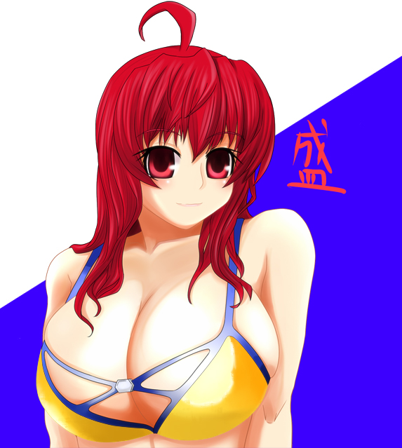 nishida asako, kamiazuma yumiko, megami magazine, touka gettan, absurdres, highres, non-web source, official art, scan, 00s, 1girl, :d, black thighhighs, blonde hair, blue eyes, blush, breasts, censored, chemise, cleavage, convenient censoring, convenient leg, covered erect nipples, crease, criss-cross halter, female focus, floating hair, garter straps, gradient background, hair between eyes, hair ribbon, halterneck, lace, large breasts, lingerie, long hair, naughty face, open mouth, partially visible vulva, ponytail, ribbon, see-through clothes, shadow, sidelocks, sitting, smile, solo, sweat, thighhighs, thighhighs pull, underwear, underwear only, undressing, wavy hair