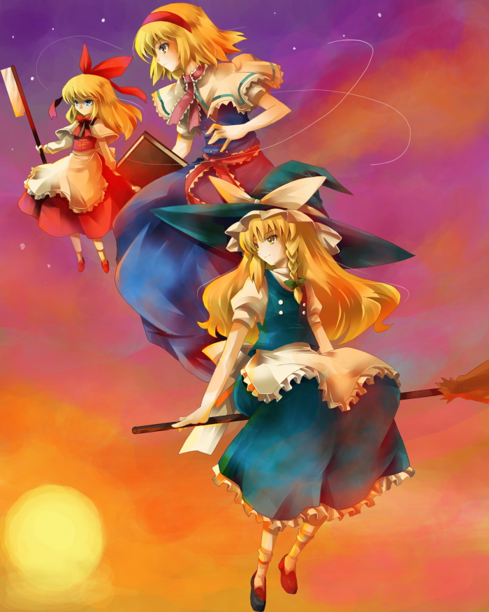 2girlsblonde hairbroombroom ridingdollfemale focusflyinglong hairmultiple girlsribbonshort hairsidesaddle