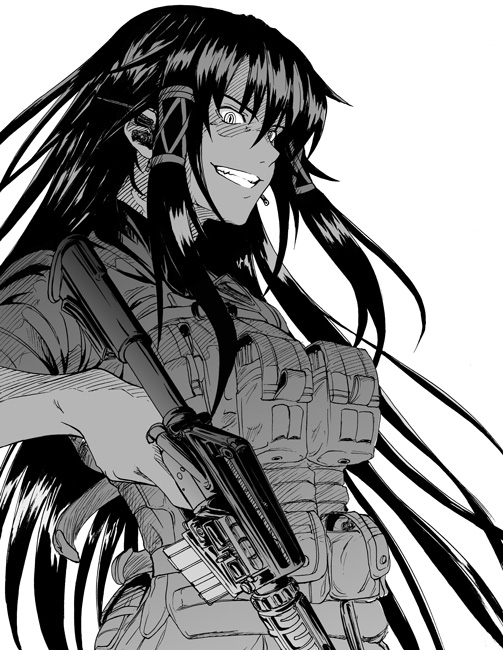 00s1girlassault rifleblack haircrazy smilefemale focusgreyscalegringunlong hairm4 carbinemonochromeriflesimple backgroundsmilesolovery long hairweapon