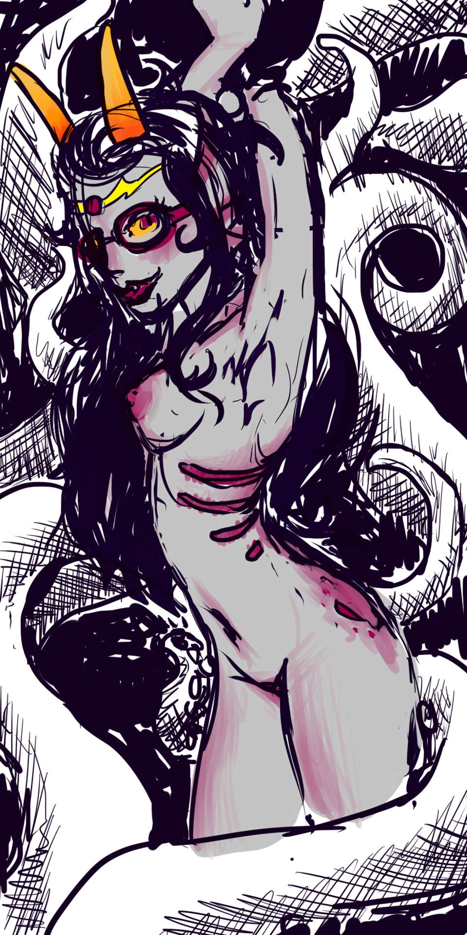 watosu, glacies, bandai namco, super robot wars, super robot wars destiny, super robot wars original generation, commission, highres, skeb commission, third-party edit, 1girl, aqua hair, arm up, armpits, blue hair, blush, breasts, completely nude, groin, hair ornament, hair tubes, hand on own chest, indoors, large breasts, long hair, lying, navel, nipples, nude, on back, on bed, pillow, solo, stomach, tan, tanline, thick thighs, thighs, very long hair, yellow eyes