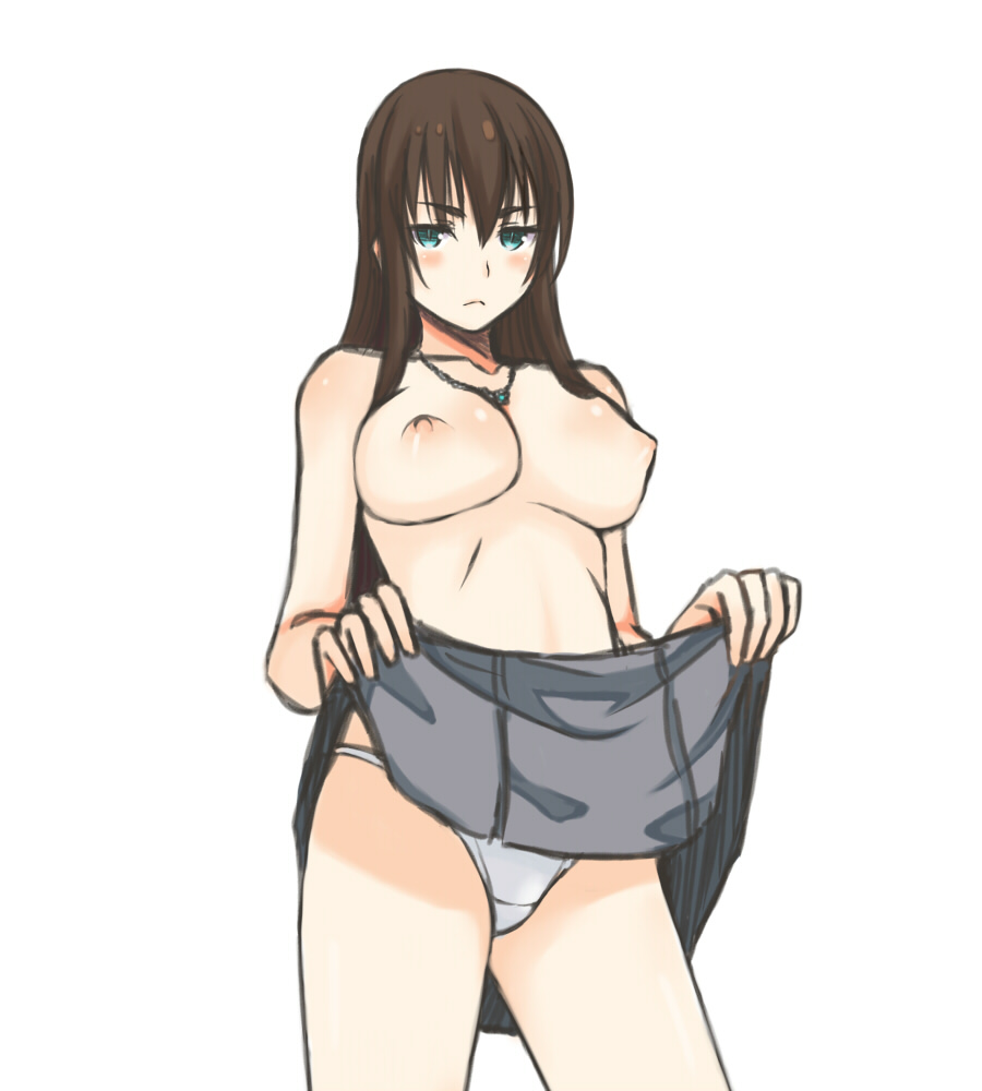 narusegawa mei, love hina, artist request, 1girl, blush, breasts, brown eyes, brown hair, censored, female focus, loli, nipples, no panties, skirt, small breasts, socks, solo, topless female