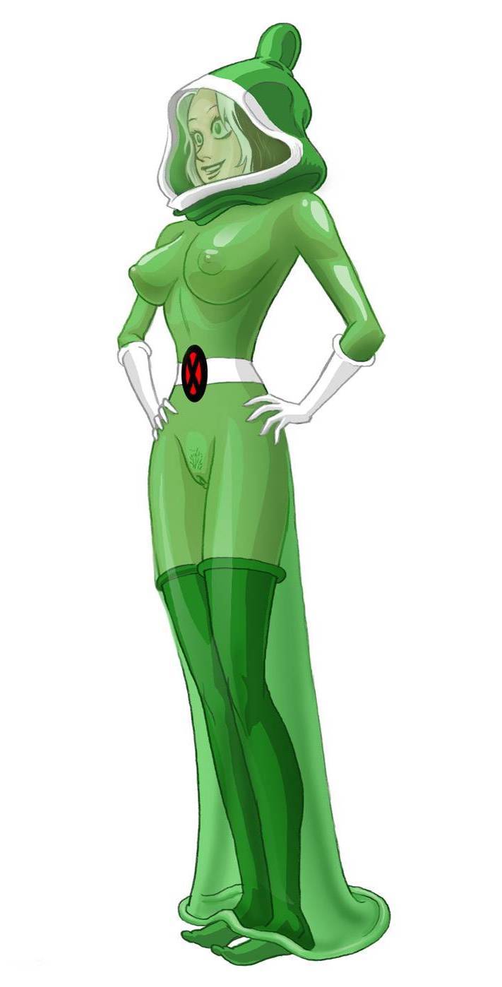 chuck (psg), panty & stocking with garterbelt, trigger (company), highres, official art, 1boy, character name, colored skin, green skin, necktie, no humans, simple background, solo, standing, tail, teeth, yellow background, zipper