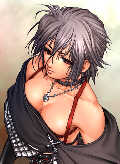 00s1girlbreastschokercleavagedownblousefemale focusfrom abovejewelrynecklacered eyesshort hairsolowet