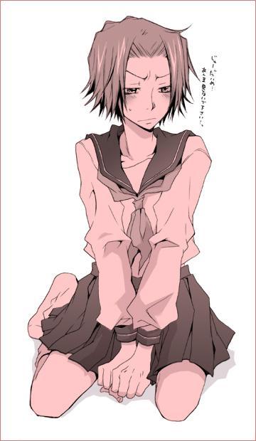 00s1boyblushcrossdressingcrossdressing (mtf)kneelingmale focusmonochromepleated shirtschool uniformserafukuskirtsockssolo