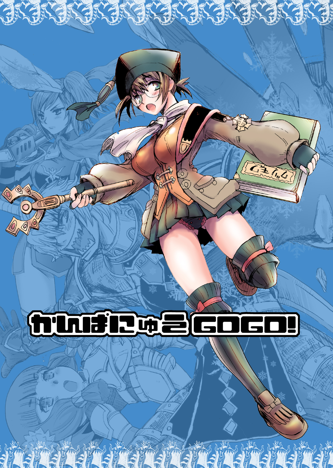 sia 6767, kawashiro nitori, touhou, absurdres, commentary, highres, 1girl, backpack, bag, blue eyes, blue hair, boots, breasts, hair bobbles, hair ornament, hat, short sleeves, skirt, small breasts, solo, two side up