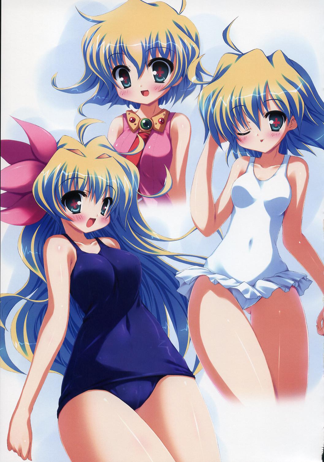 :p00sblue eyesblue hairblushlong hairone eye closedone-piece swimsuitopen mouthschool swimsuitshort hairswimsuitthighhighstonguetongue outwink