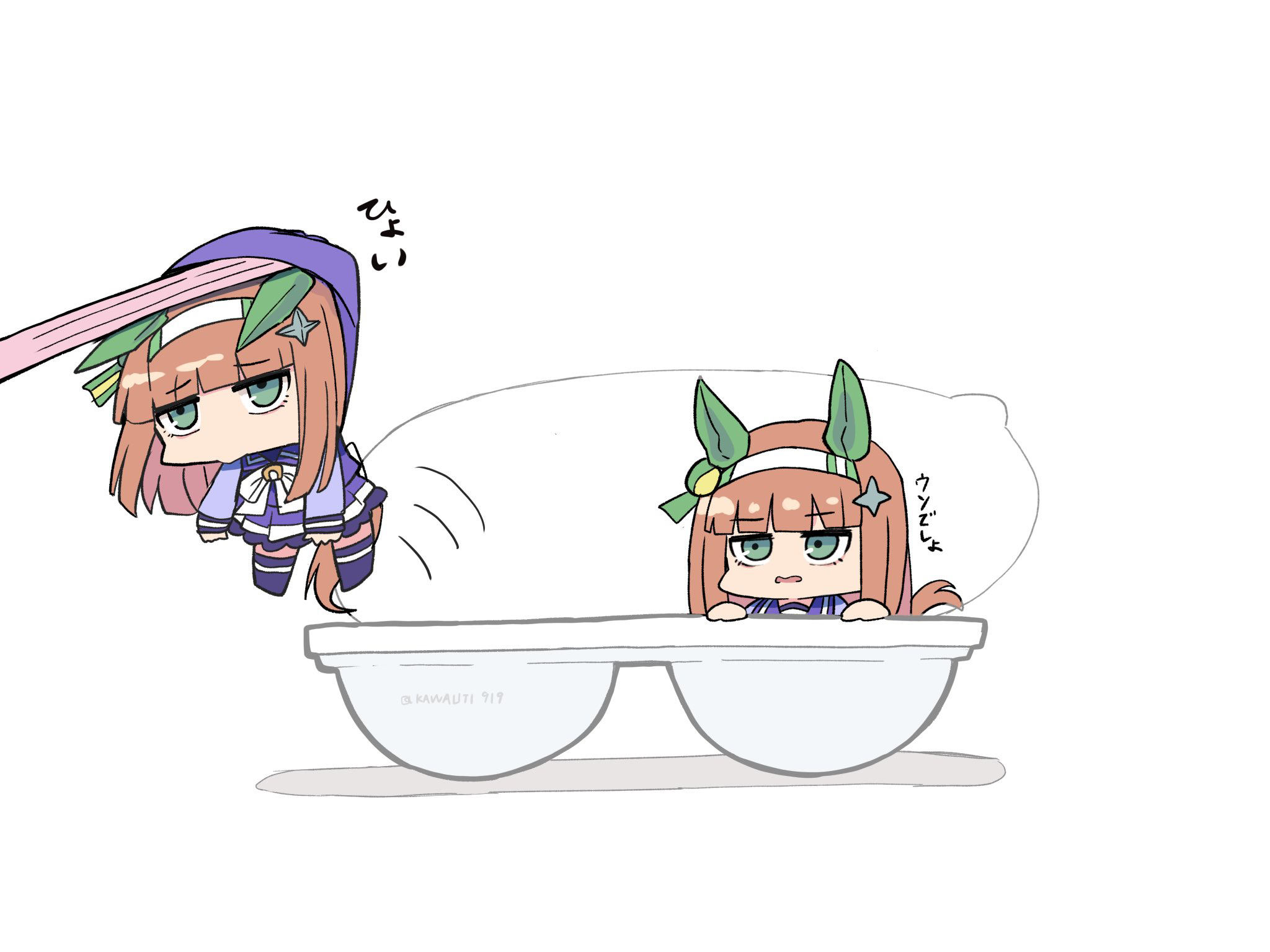 2girlsanimal earsbowbrown hairchibidual personaears downgreen eyeshairbandhorse earshorse girlhorse taillong hairlong sleevesmini personminigirlmotion linesmultiple girlsno shoesparted lipspleated skirtpuffy long sleevespuffy sleevespurple shirtpurple skirtpurple thighhighsschool uniformshadowshirtskirtsleeves past wriststailthighhighstracen school uniformtwitter usernamevery long hairwavy hairwhite backgroundwhite bowwhite hairbandyukimi daifuku (food)
