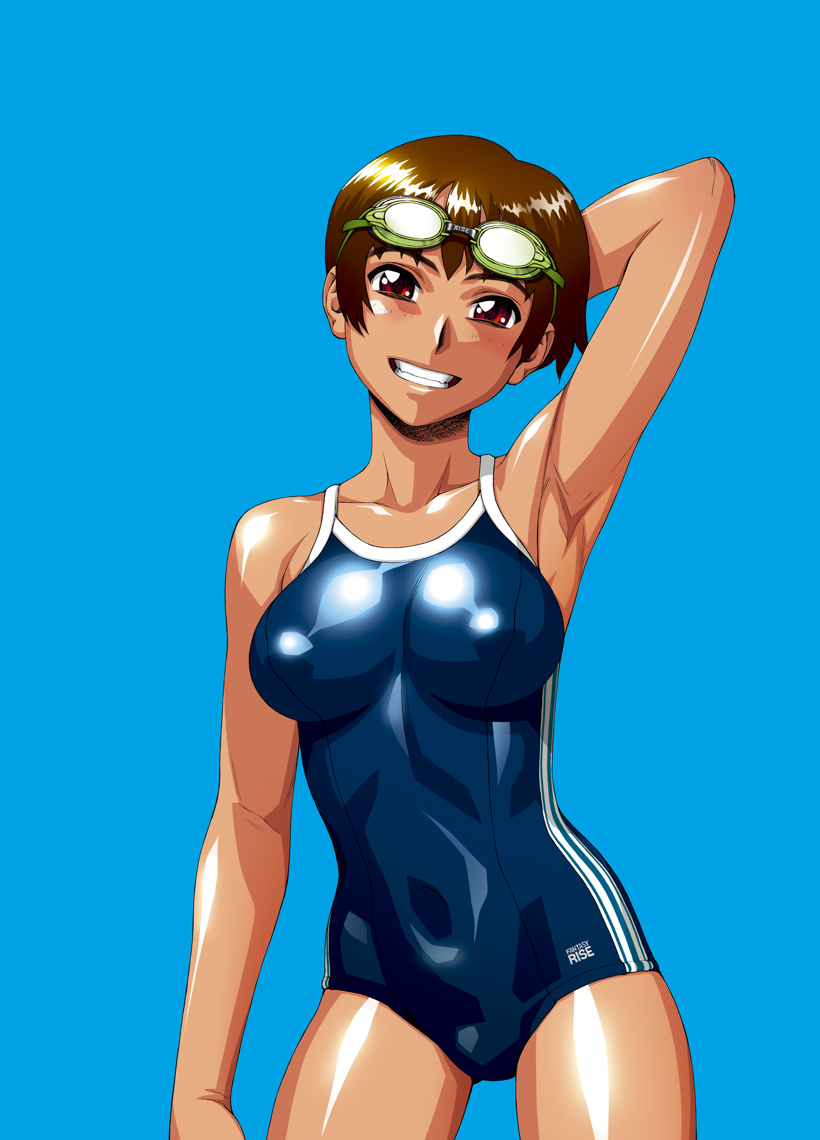 kamia (not found), matsuoka kiyone, neon genesis evangelion, original, 1girl, alternate breast size (larger), bodysuit, breasts, cosplay, female focus, hand fan, huge breasts, mecha pilot suit, paper fan, plugsuit (cosplay), plugsuit (evangelion), red bodysuit, shiny clothes, skin tight, solo, souryuu asuka langley (cosplay), wide hips