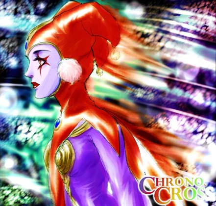 1girlbodysuitbreastsfacepaintfemale focusfrom sideharlequinhatjester caplipstickmakeuppom pom (clothes)red eyesred lipsskin tightsmall breastssoloupper body