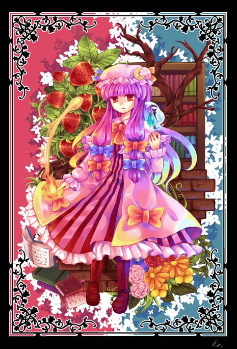 1girlbookcrescentcrescent hat ornamentfemale focushathat ornamentlong hairpurple hairribbonsolo