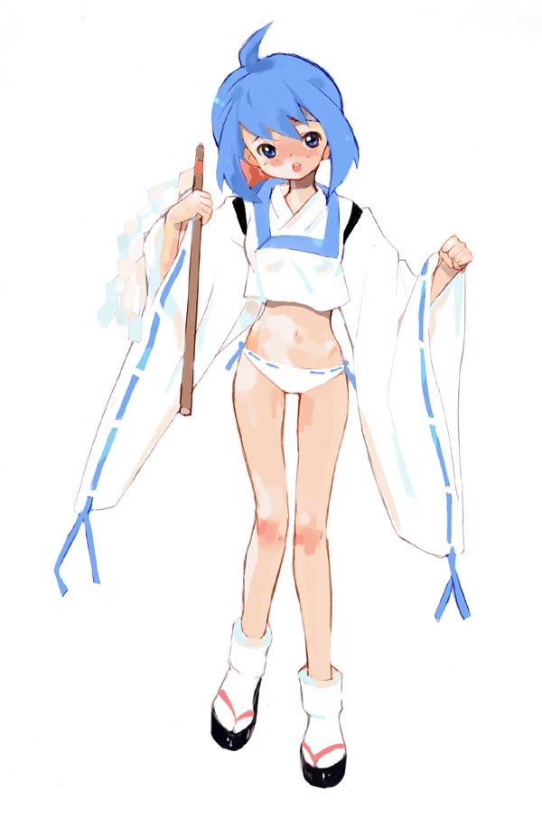 1girlblue eyesblue haircrop topfemale focuship bonesjapanese clothesmatching hair/eyesmidriffmikonavelnontraditional mikoonmyoujipantiesribbon trimribbon-trimmed pantiesribbon-trimmed sleevessolounderwear