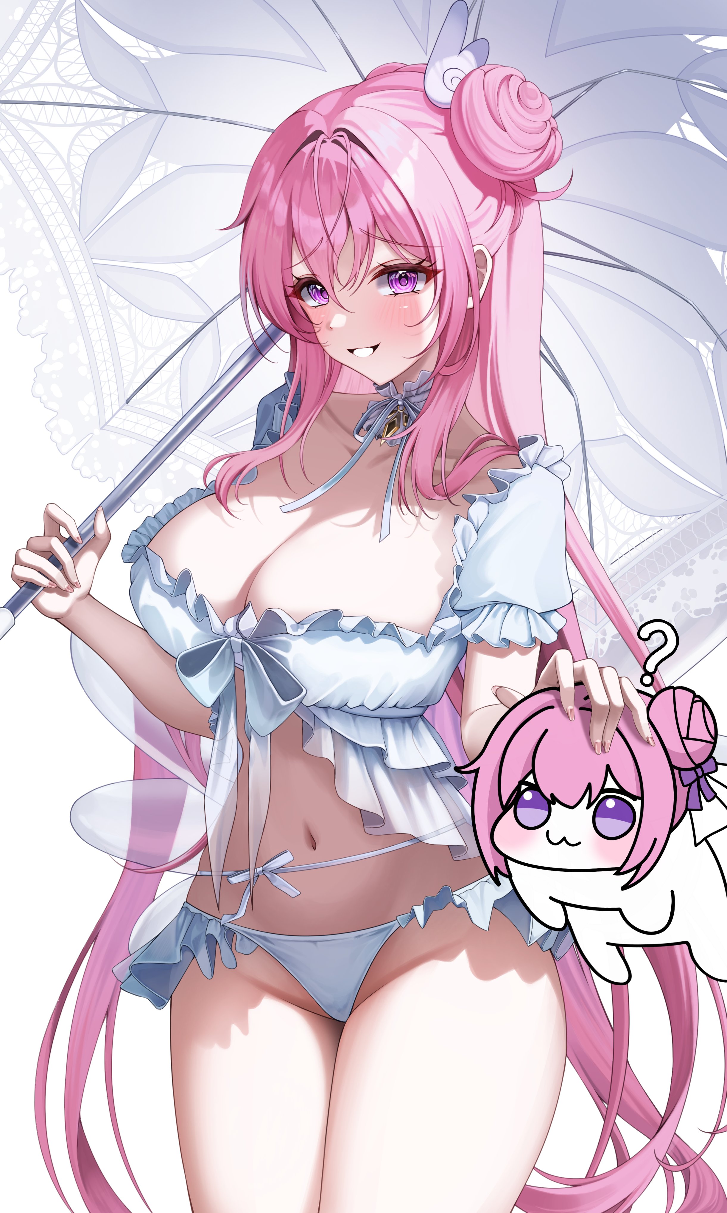 1boy1girlantenna hairbare legsbikinibowbow bikinibreastschibichibi insetchokercleavagecollarbonecowboy shotfrilled bikinifrilled chokerfrillshair between eyeshair bunhair intakeshair ornamentholdingholding umbrellalace-trimmed umbrellalarge breastslight blushlong hairlooking at viewermidriffnail polishnavelofficial alternate costumepink hairpink nailspurple eyesribbonshort sleevessidelockssimple backgroundsmilesolostomachswimsuitthighstransparent wingsumbrellaumbrella over shouldervery long hairwhite backgroundwhite bikiniwhite bowwhite chokerwhite ribbonwings