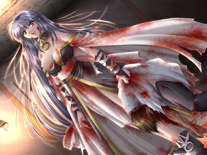 1girlbloodbreastsdeathelbow glovesfemale focusfingernailsglovesgurolong fingernailslong hairnail (hardware)no brapointy earssoloweaponyandere