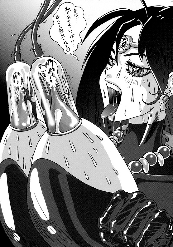 rara mitsuki, dual! parallel trouble adventure, apron, blush, kneeling, monochrome, naked apron, solo