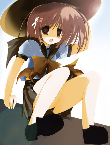 00s1girlbrown eyesbrown hairfemale focusgradient backgroundhatno socksoutdoorsschool uniformserafukushoesshort hairsittingskysolo