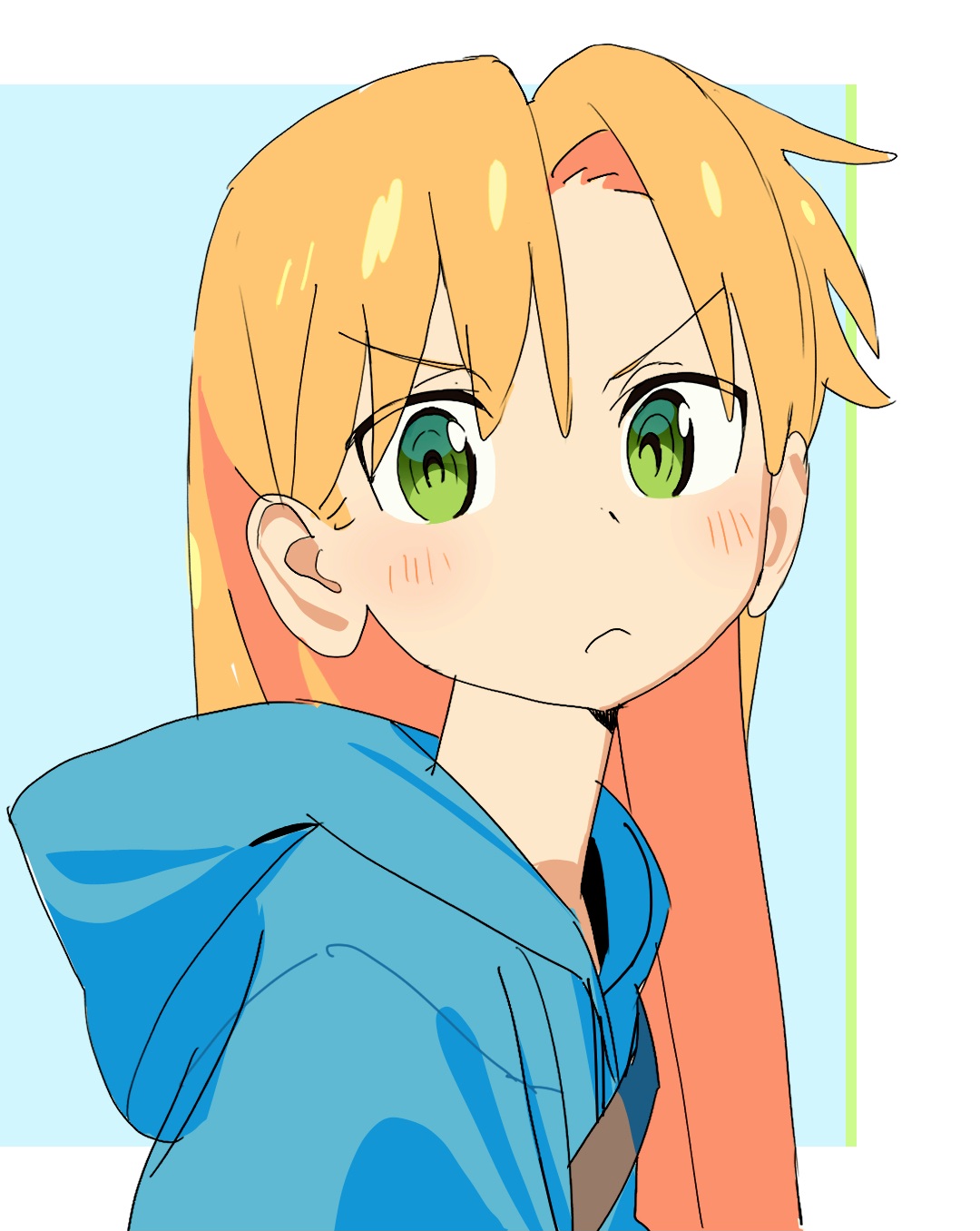 onija tarou, blue eyes, green hair, oekaki, school uniform, serafuku, smile, solo