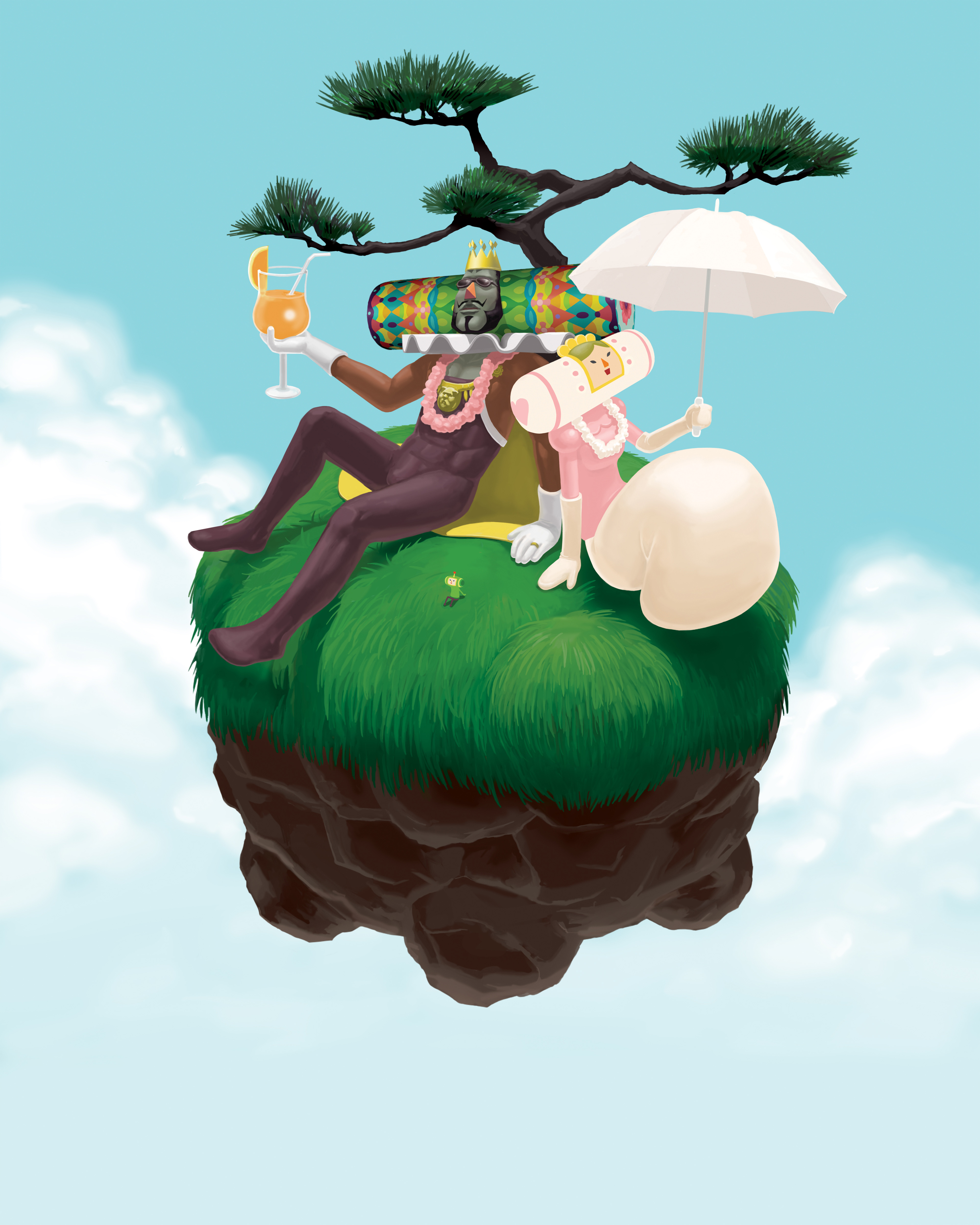 tatami to hinoki, hatsune miku, vocaloid, bad id, bad pixiv id, 1girl, closed eyes, cloud, day, detached sleeves, female focus, green hair, long hair, necktie, open mouth, skirt, sky, solo, thighhighs, twintails
