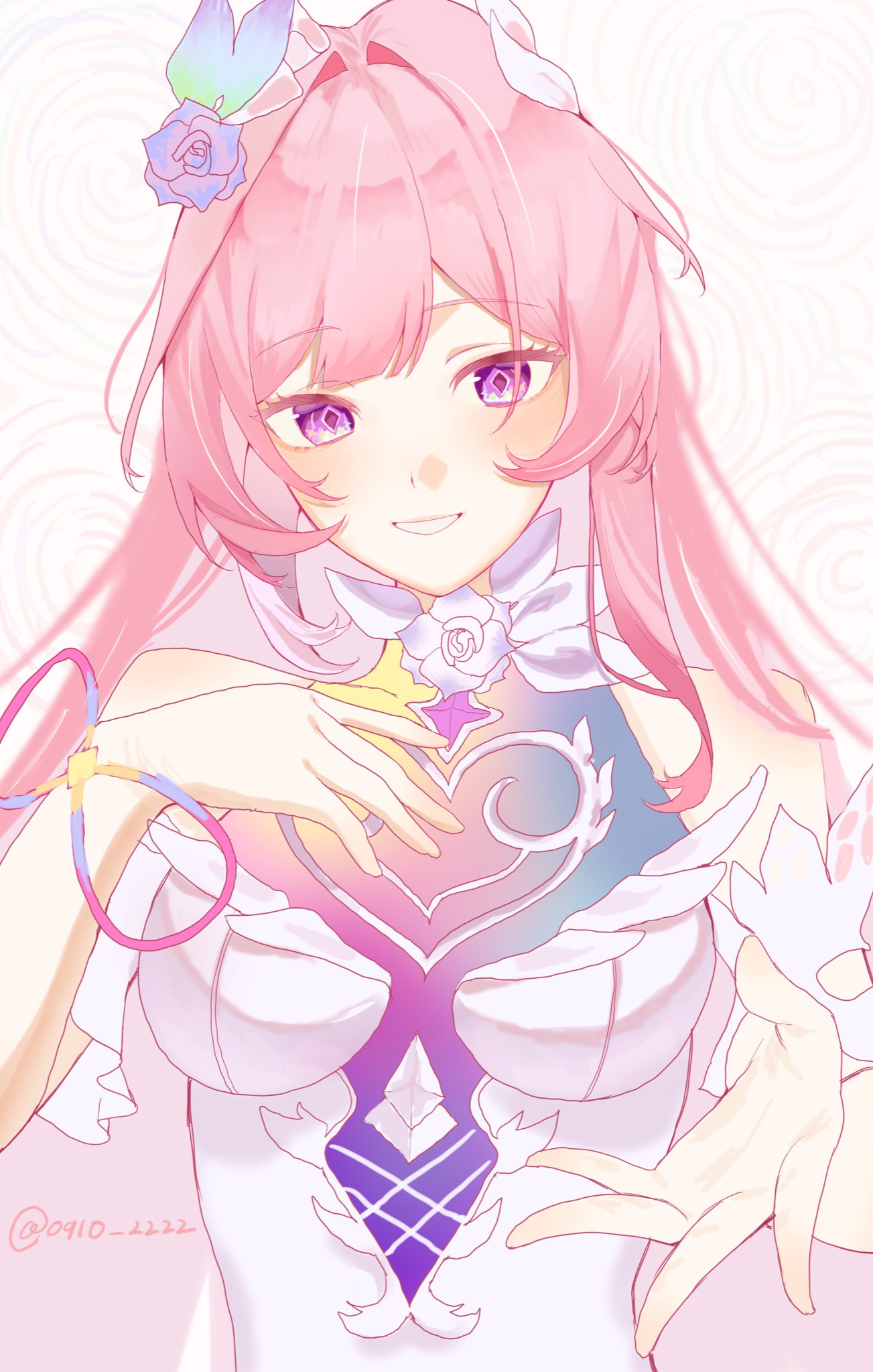 0910 22221girlbare shouldersbreastsdiamond (shape)diamond-shaped pupilsdressflowerhair flowerhair ornamentlarge breastslong hairlooking at viewermulticolored hairpink hairpurple eyesreachingreaching towards viewersimple backgroundsmilesolosymbol-shaped pupilstwitter usernametwo-tone hairvery long hairwhite backgroundwhite dresswhite hair