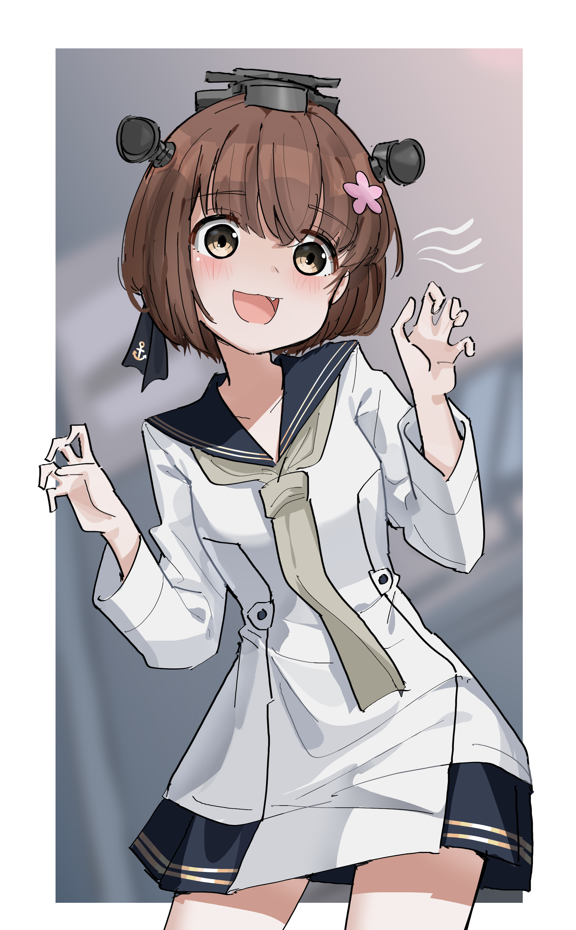 blue neckerchiefblue sailor collarbrown eyesbrown haircherry blossomsdressgrey neckerchiefheadgearlong shirtneckerchiefone-hour drawing challengeradar hair ornamentsailor collarsailor dress