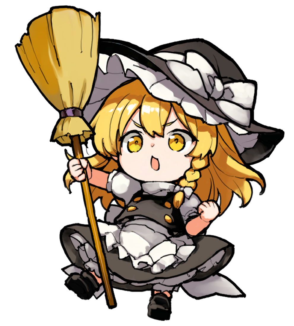1girlapronblack hatblack shoesblack skirtblonde hairbowbraidbraided sidelockbroomchibichibi onlyclenched handfrilled apronfrillsfull bodyhair bowhathat bowholdingholding broomlooking at vieweropen mouthshoessimple backgroundskirtskirt setsolov-shaped eyebrowswhite apronwhite backgroundwhite bowwitch hatyellow eyes