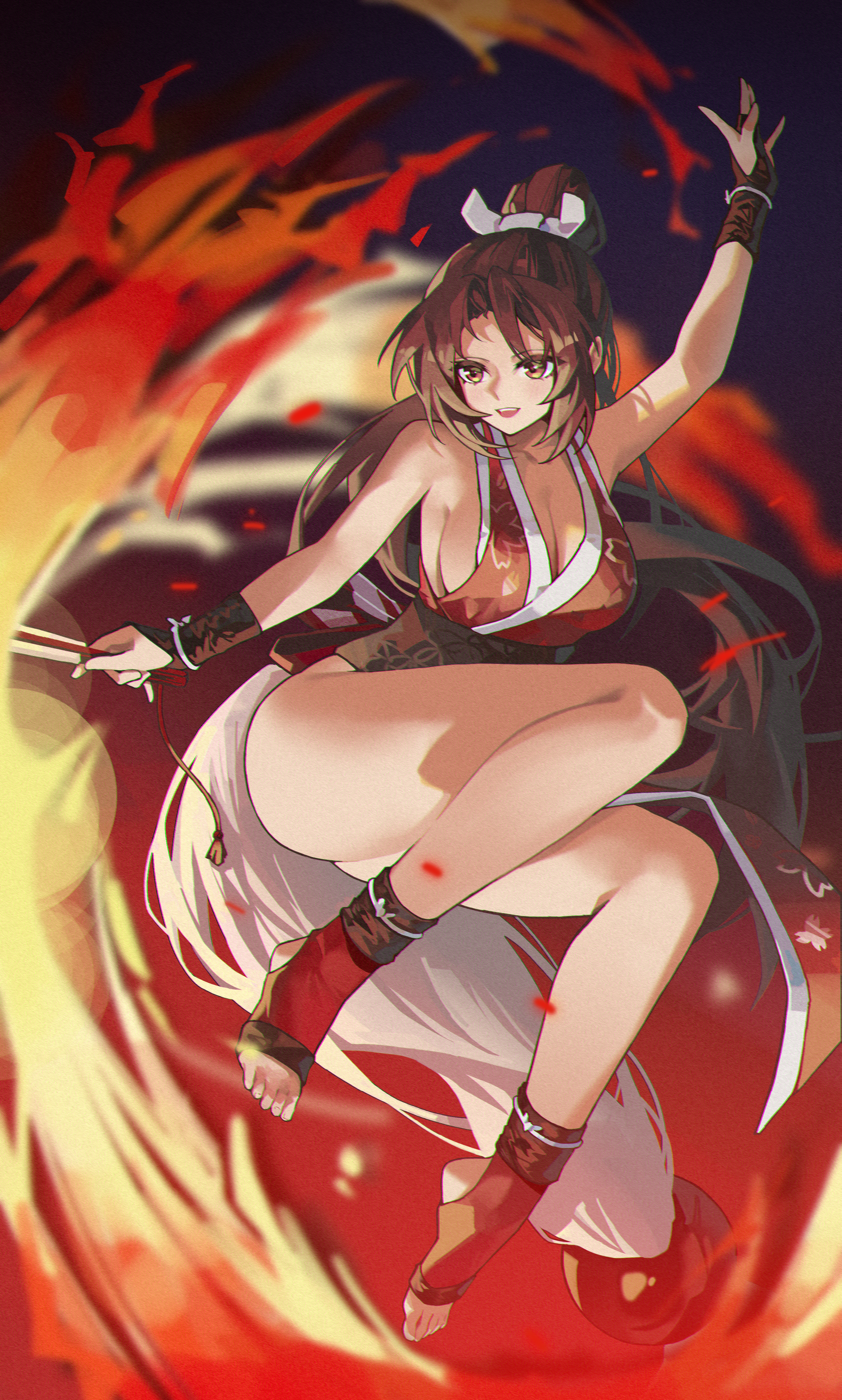 ikeda (cpt), makoto (street fighter), capcom, street fighter, street fighter iii (series), 1girl, androgynous, barefoot, dirty, dirty feet, dougi, feet, female focus, high kick, kicking, short hair, solo, tomboy