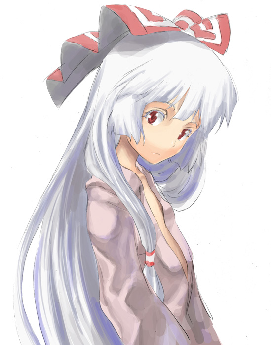 1girlcollared shirtexpressionlessfemale focuslong hairlong sleeveslooking at viewershirtsolosuspendersupper bodyvery long hairwhite backgroundwide-eyed