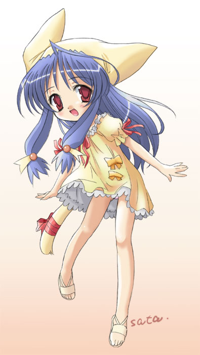 1girlahogeanimal hatartist nameblue hairblushchilddressfeetfemale focushatlong hairpantiespantyshotpink pantiesred eyessandalssignaturesolotailtoesunderwear