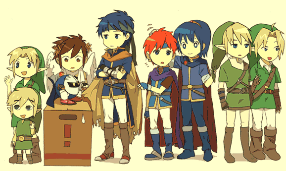 fire emblemfire emblem: new mystery of the emblemfire emblem: path of radiancefire emblem: the binding bladekid icaruskirby (series)metal gear (series)metal gear solidnintendosuper smash bros.the legend of zeldathe legend of zelda: ocarina of timethe legend of zelda: the wind waker
