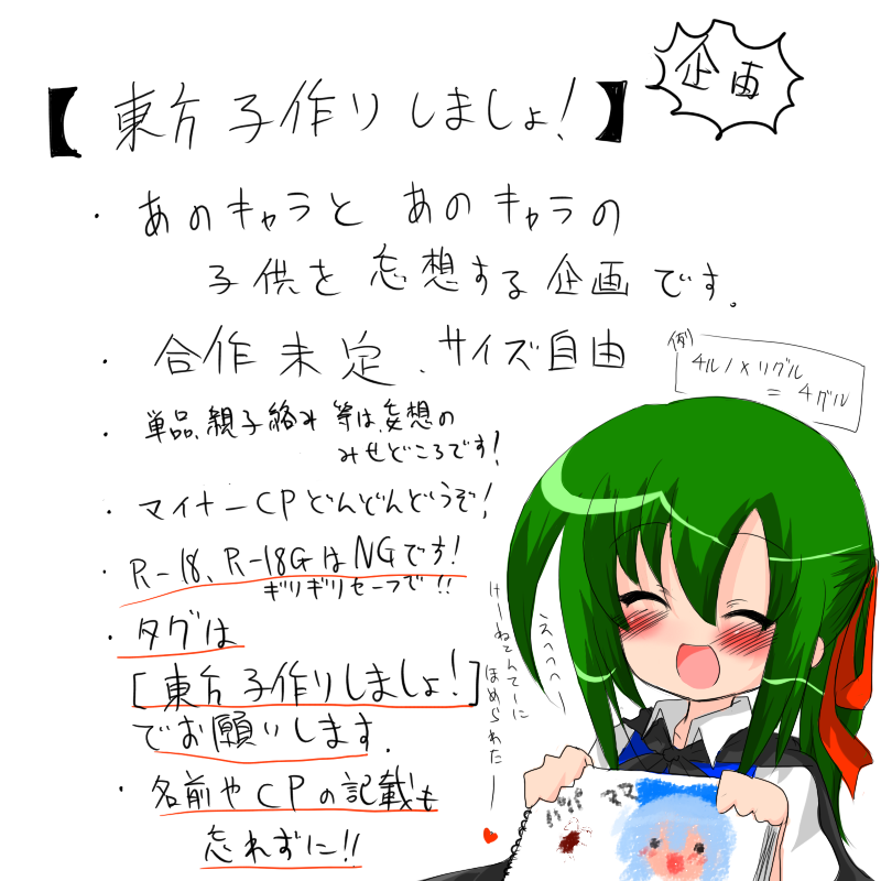 1boy1girlblue hairbowbugcapechild's drawingclosed eyescockroachfemale focusgreen hairhair bowhair ribbonif they matedribbonsmilesolo