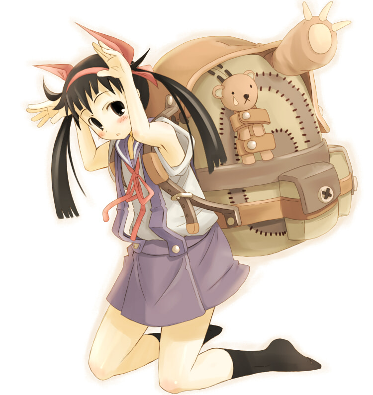 00s1girlbackpackbagblack eyesblack hairblack socksblushfemale focusfull bodygradient backgroundhair ribbonkneelingrabbit poserandoseruribbonschool uniformserafukusimple backgroundsockssolostuffed animalstuffed toyteddy beartwintailswhite background