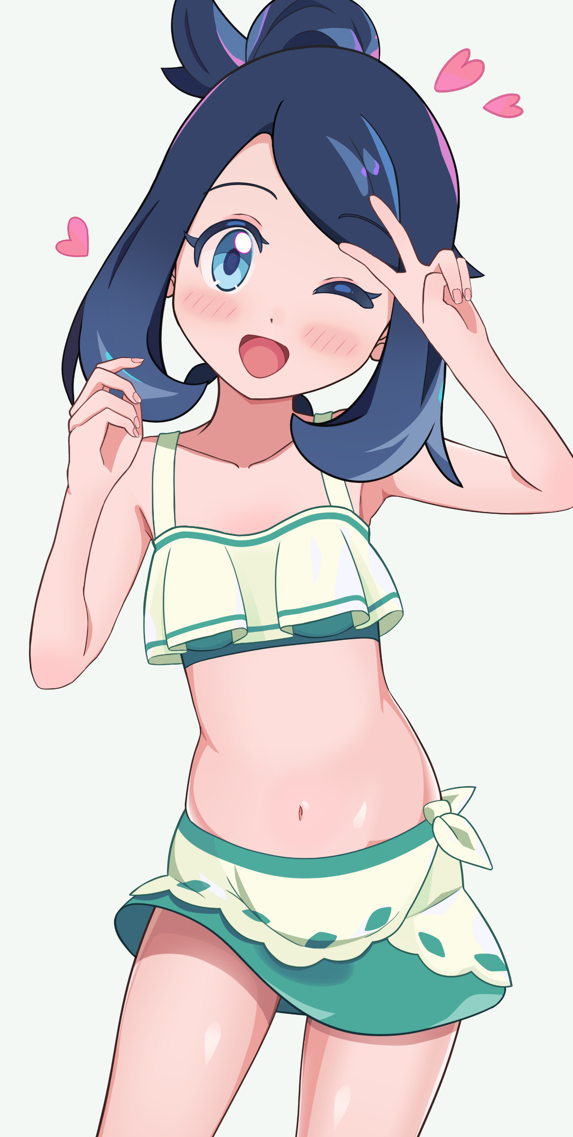 nyazui, sakino asuka, kimi kiss, blush, midriff, miniskirt, navel, ponytail, short hair, skirt, smile, solo