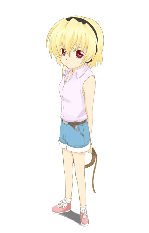 hirai yukio, kurame, futaba channel, kusari hime: euthanasia, liarsoft, wonder festival, archived source, bad link, 1girl, arm at side, brown hair, chibi, chibi only, closed mouth, fingernails, full body, geta, hair tubes, hand on ground, head tilt, japanese clothes, kimono, long fingernails, long hair, long sidelocks, long sleeves, looking at viewer, mizuhiki, no nose, obi, obiage, obijime, ponytail, purple sash, red kimono, red nails, red pupils, red ribbon, red sandals, red sleeves, ribbon, sandals, sash, sharp fingernails, sidelocks, simple background, single bare foot, single hair tube, sitting, slit pupils, smile, solo, tengu-geta, unworn sandals, very long hair, white background, wide sleeves, yellow eyes, yellow ribbon, yokozuwari