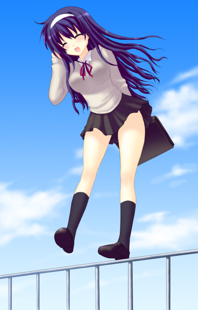 00s1girlblack socksdayfemale focusfencefloating hairfull bodyhairbandkneehighsloaferslong hairoutdoorsshoesskirtsockssolostandingsweatervery long hairwind