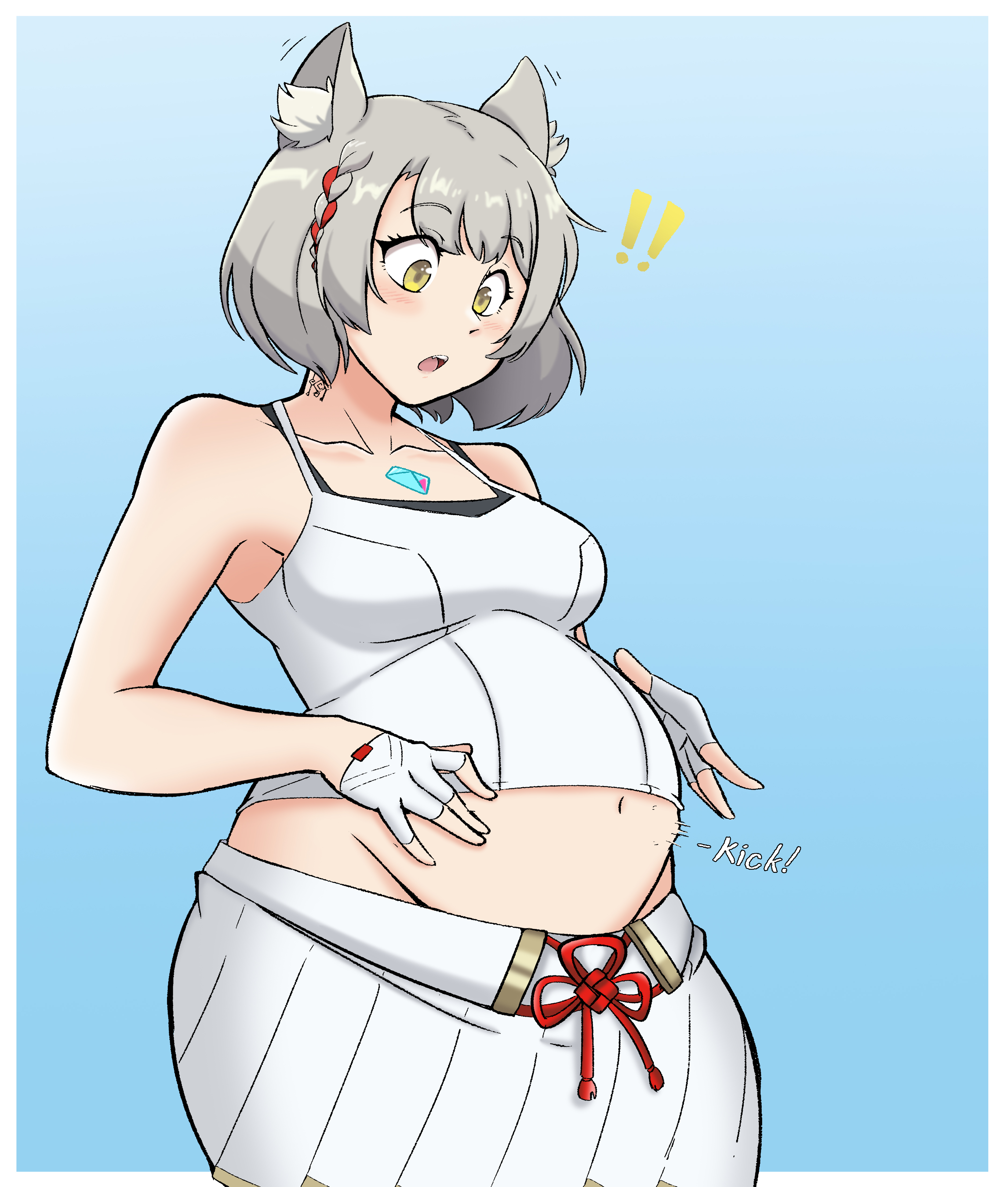 :o1girlsahogeamber eyesbelly bulgeblushcanon pregnancycat earseyebrows visible through hairfetal movementfingerless glovesFlag for Deletiongrey hairkemonomimimio (xenoblade)navelpregnancypregnanttank topwickedatlas