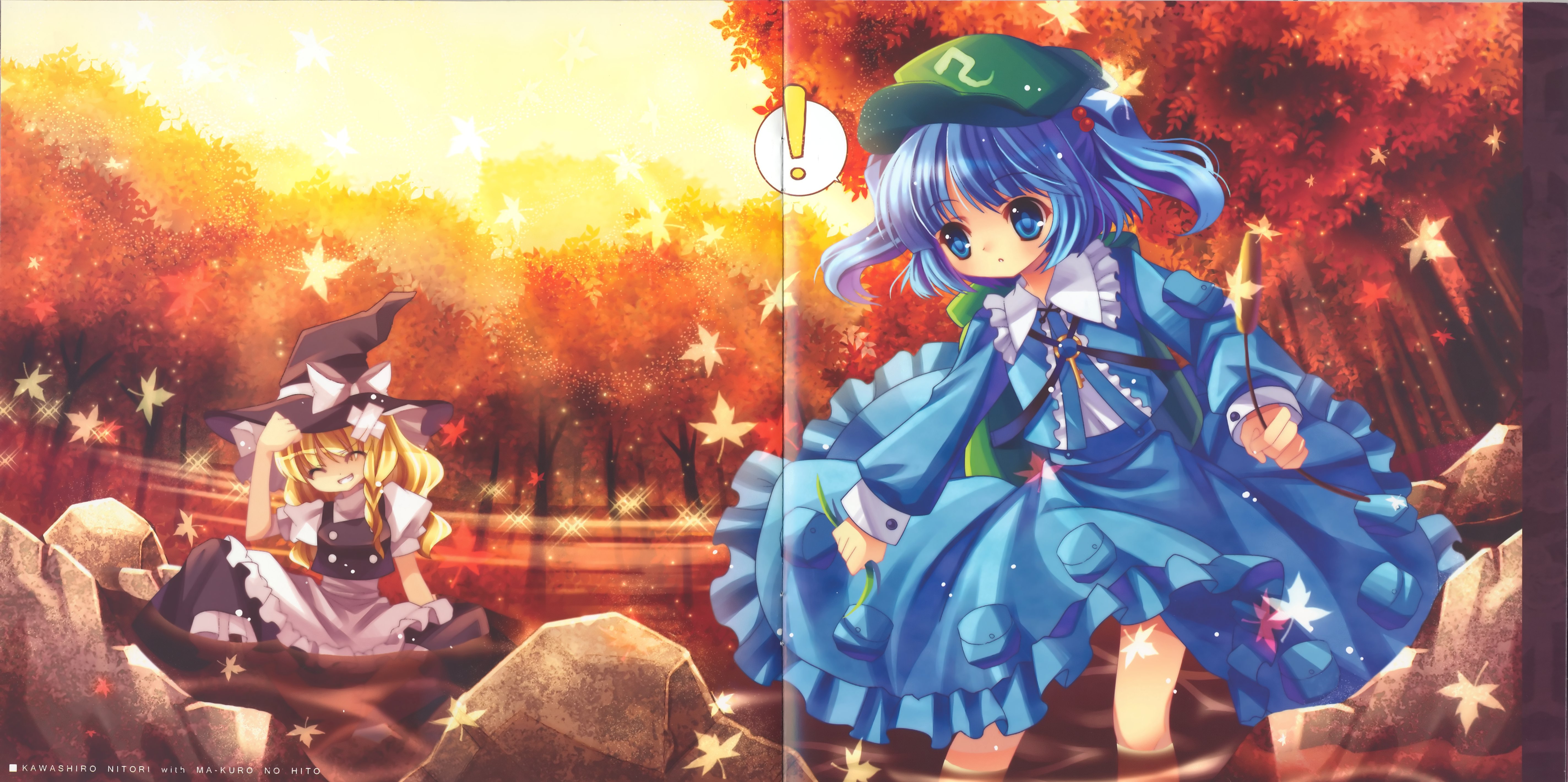 fate testarossa, ganba, noroi, takamachi nanoha, yagami hayate, yuuno scrya, ganba no bouken, lyrical nanoha, mahou shoujo lyrical nanoha, mahou shoujo lyrical nanoha a's, 00s, 2008, animal, ferret, hair ornament, monster, new year, no humans, oekaki, parody, scared, school uniform, sharp teeth, size difference, surprised, teeth, twintails, upper body, vest, wide sleeves, x hair ornament