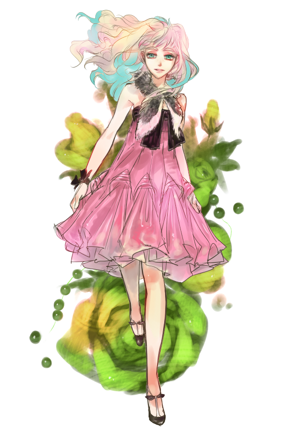 00s1girlblonde hairdressearringsfemale focusflowerfull bodyjewelrylong hairlooking at viewersleevelesssmilesolostanding