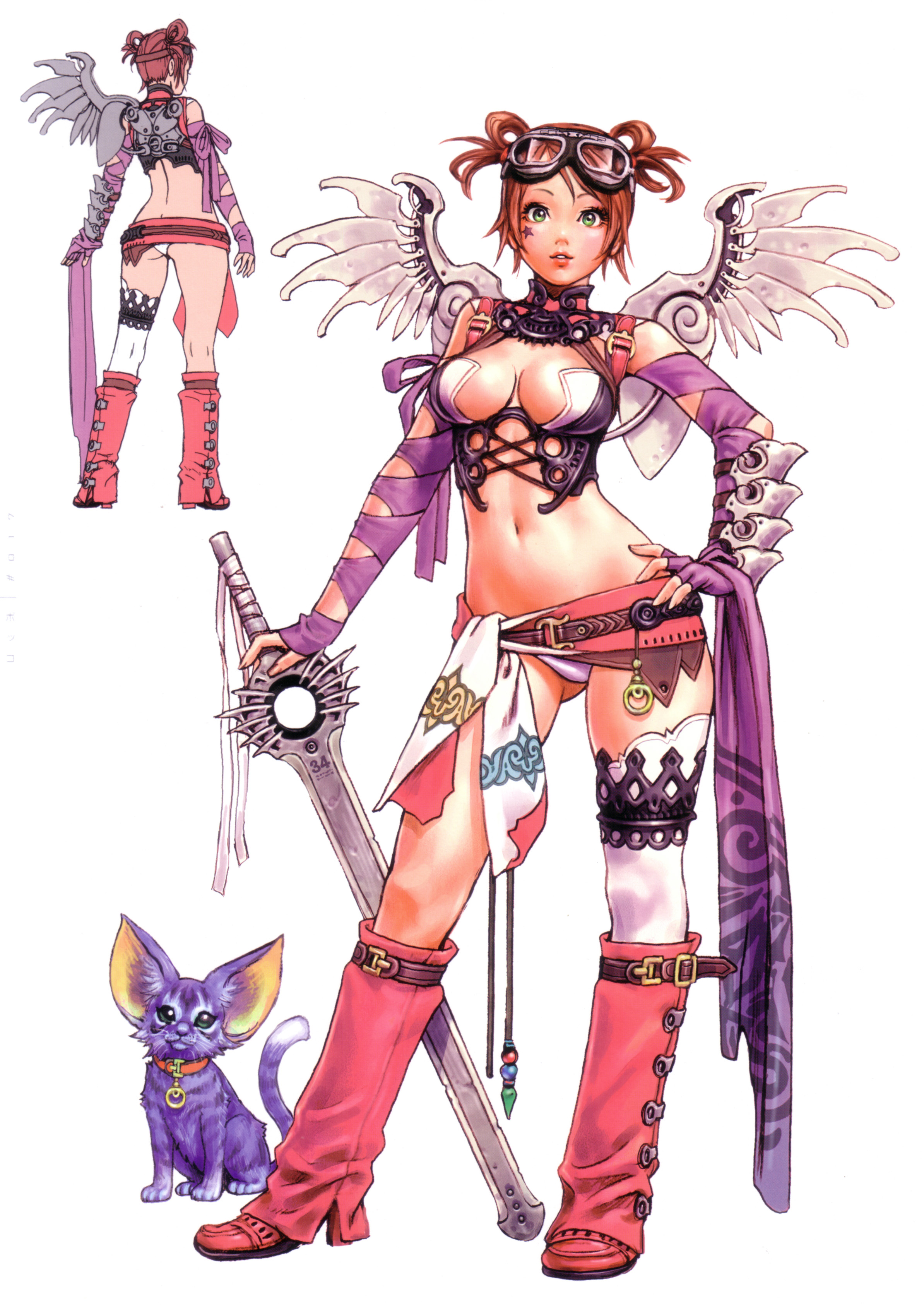 1girlassbackbootsbreastsbrown haircatcleavagefacial markfingerless glovesglovesgogglesgreen eyeshand on own hiphigh heelship focusholdingholding unworn clothesholding unworn scarfjewelrymedium breastsmidriffpantiespink bootsscarfshoesshort twintailssingle thighhighstar (symbol)star facial markstar tattooswordtattoothighhighsthighlettwintailsunderwearunworn scarfweaponwhite pantieswings