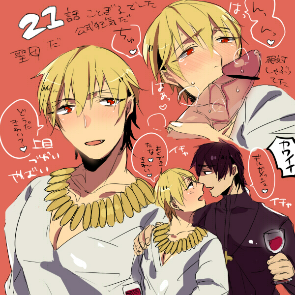 donmin h, fuuka (blue archive), izumi (blue archive), izumi (new year) (blue archive), blue archive, commentary, english commentary, official art, 2girls, ahoge, apron, bowl, chibi, closed mouth, food, food on face, frilled apron, frills, gradient hair, grey hair, halo, holding, holding spoon, horns, japanese clothes, kimono, long hair, long sleeves, multicolored hair, multiple girls, no nose, pajamas, pink pajamas, pink shirt, pout, puffy long sleeves, puffy sleeves, purple hair, red kimono, shirt, speech bubble, spoon, sweatdrop, tongue, tongue out, under covers, v-shaped eyebrows, wide sleeves, yellow halo
