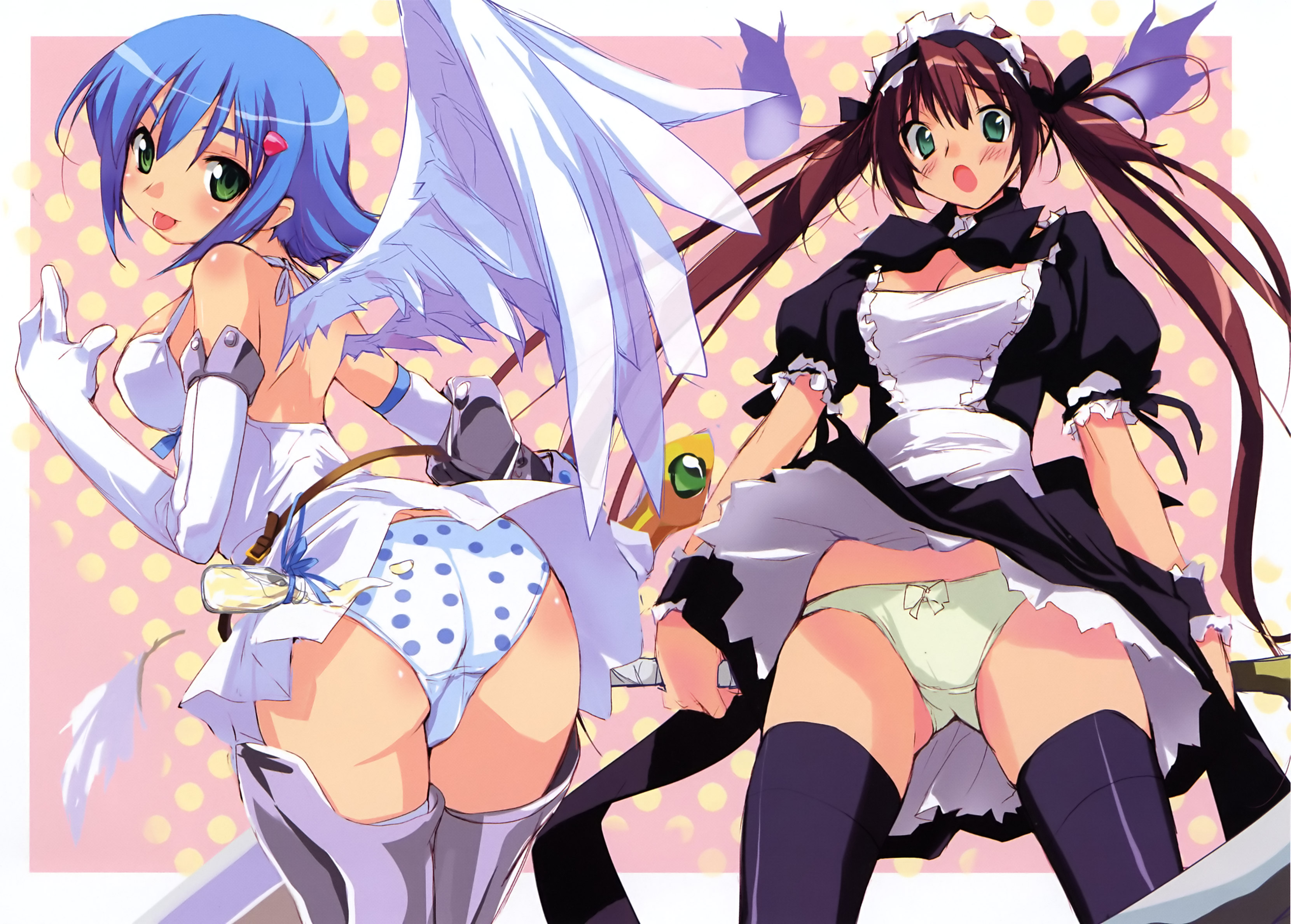 :p00s2girlsangelangel wingsassasymmetrical wingsbare shouldersblue hairblushbreastselbow glovesglovesgreen eyesmedium breastsmultiple girlsopen mouthpantiespantyshotpolka dotpolka dot pantiesred hairshort hairthighhighstonguetongue outtwintailsunderwearupskirtwhite pantieswings